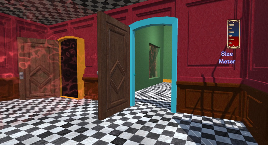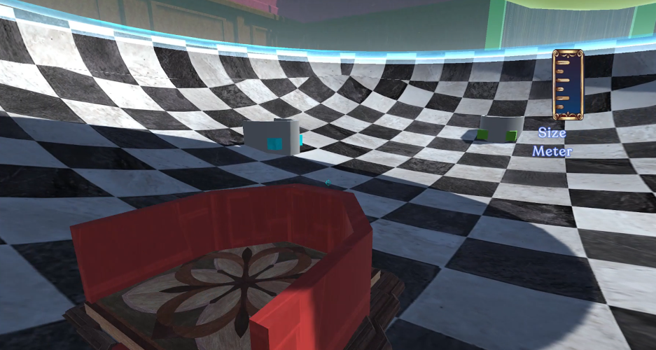 Size Matters is a single-player puzzle experience, where players are challenged to cross a series of rooms by completing puzzles. That can only be solved using the Swap Mechanic (upon looking at a swappable object, the player can change their size and position with said object).